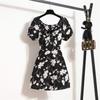 Women's Fashion Summer Spring Floral Print Short Sleeve V-Neck High Waist Casual Dresses