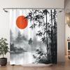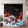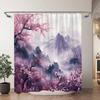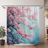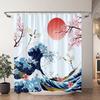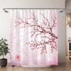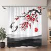 Japanese Cherry Blossom Watercolour Print Shower Curtain Koi Waves Chinese Ink Painting Polyester Shower Curtains Bathroom Decor