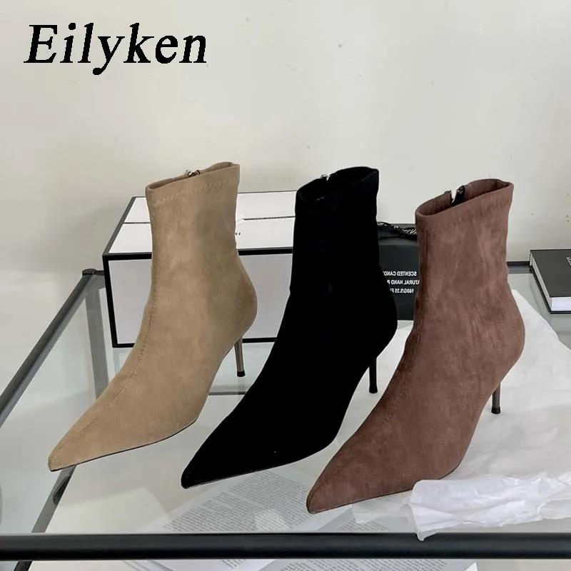Fashion Eilyken Fashion Spring Autumn Sexy High Heels Pointed Toe Ankle Boots Woman Nightclub Party Shoes Zipper Short Booties
