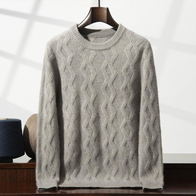 Five-pin Three-strand Heavy-duty Thickened Cashmere Sweater, Round Neck Wavy Cashmere Sweater for Men
