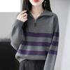 Women's Zipper Striped Loose Knit Top