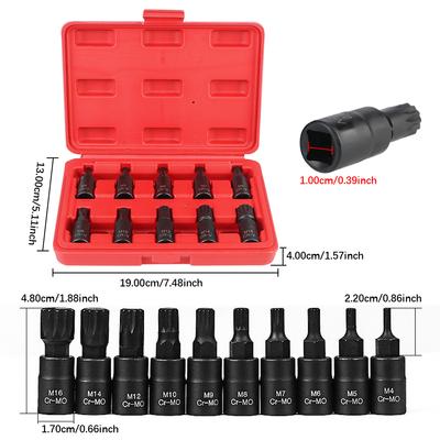 14Pcs External Torque Star Socket Set Drive Inverted Hexagonal Torx Impact Repair Tool