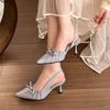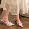 Fashion Summer New Fashion After The Ring Belt Sexy Banquet Bow Women's Shoes Pointy Comfortable Solid Color Elegant High Heel Sandals