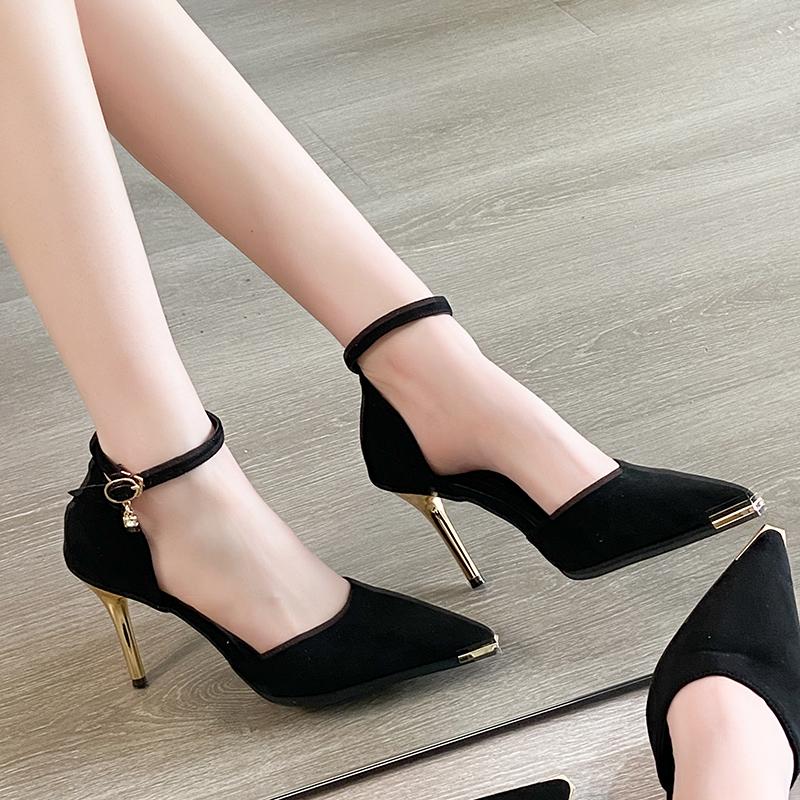 Fashion Spring and Autumn High Heel Women 2025 New Versatile Thin Heel Professional Pointed Black Buckle Strap Single Shoe Women