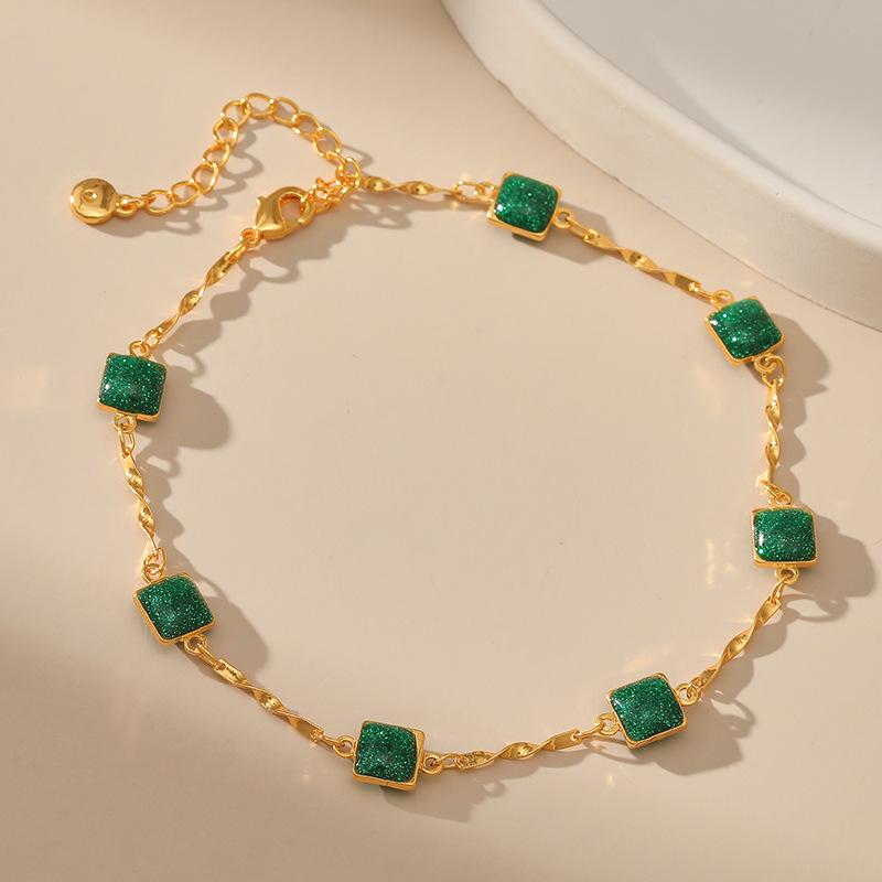 Copper Plated 18K Gold Korean Green Zircon Accessory Design Slender Chain Women's Fashion Anklet Elegant Temperament KTJ