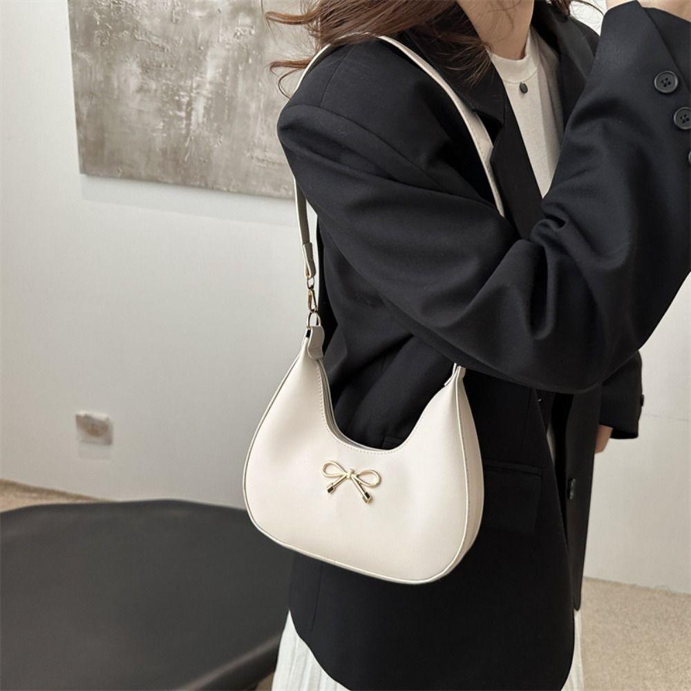 PU Leather Crescent Bag Handbag Crossbody Bag Simple Bow Shoulder Bag Women