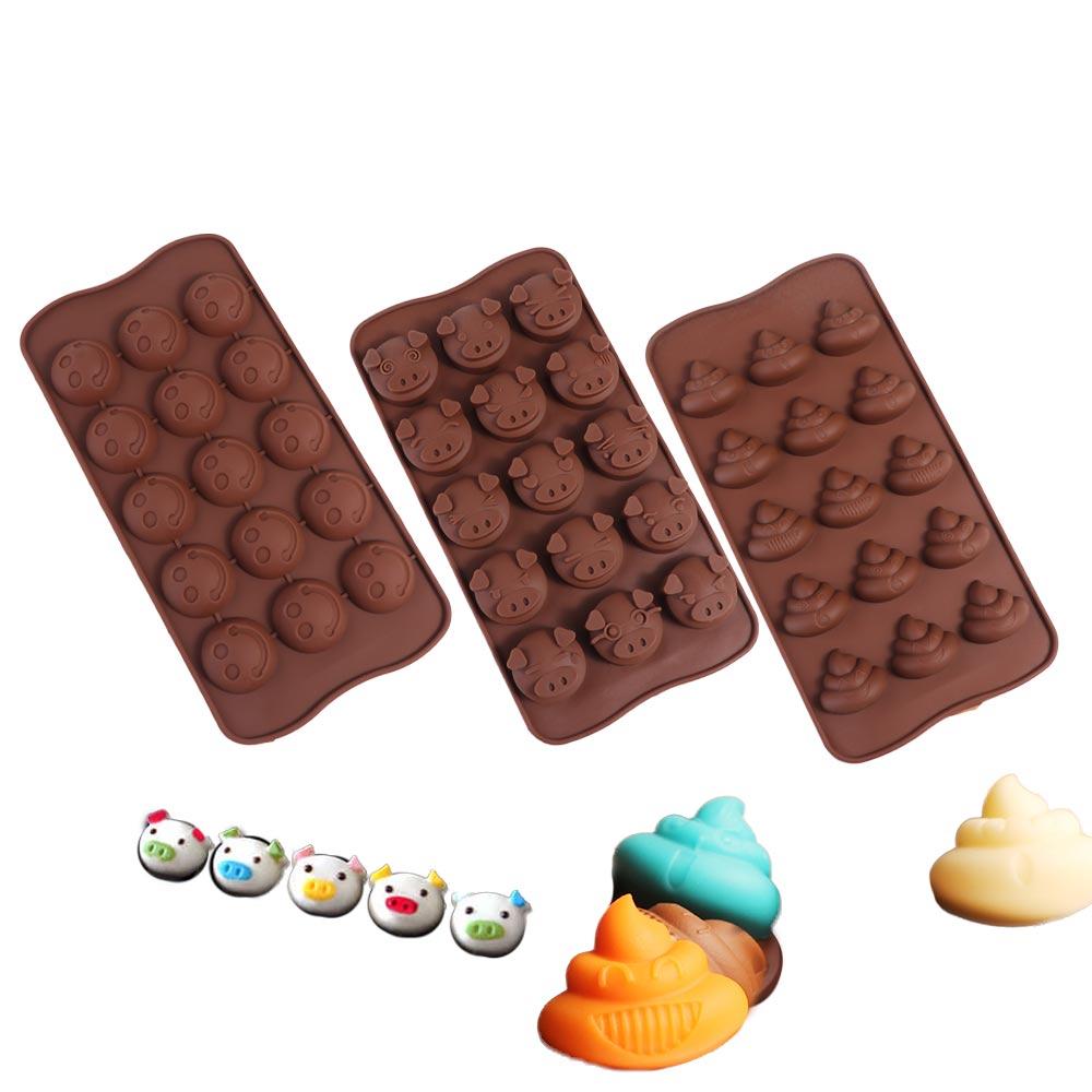 Smile Face Pig Shaped Mini Poop Chocolate Mold 15 Grids Candle Mold Poop Silicone Mold DIY