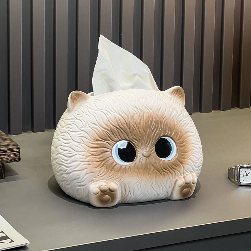 Modern Cat Tissue Box Ceramic Napkin Dispenser Storage Tube Towel Organizer Living Room