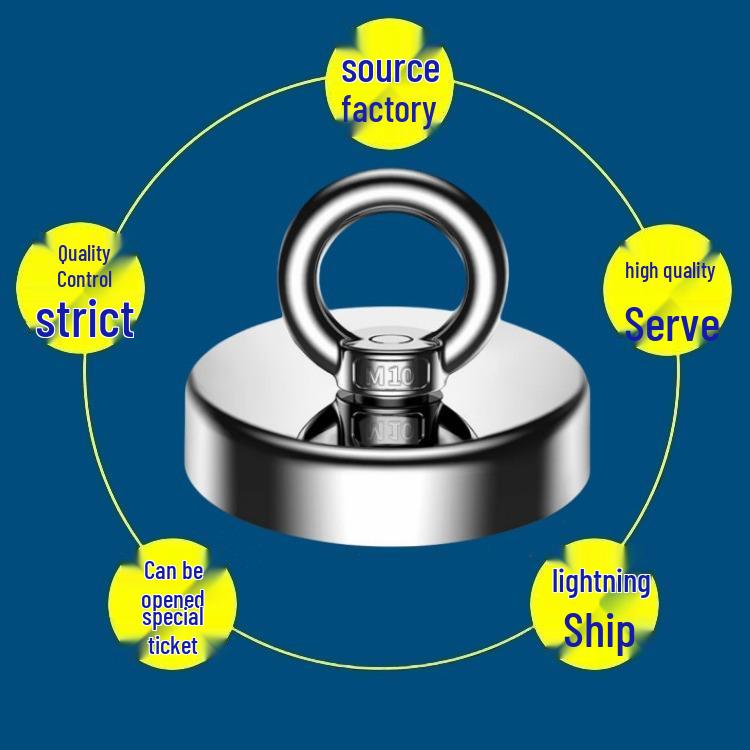 Round High-Strength Neodymium Fishing Magnet with Suction Cup Eyebolt