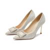 Rhinestone Square Buckle High-heeled Shoes Women's Spring New French Style Pointed Toe Stiletto Shallow Mouth Professional Single