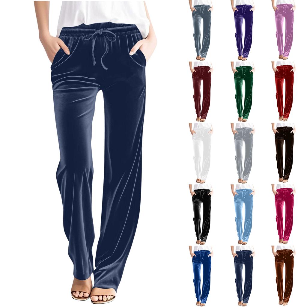 Women's Casual Solid-Color Pants High-Waisted Drawstring Trousers