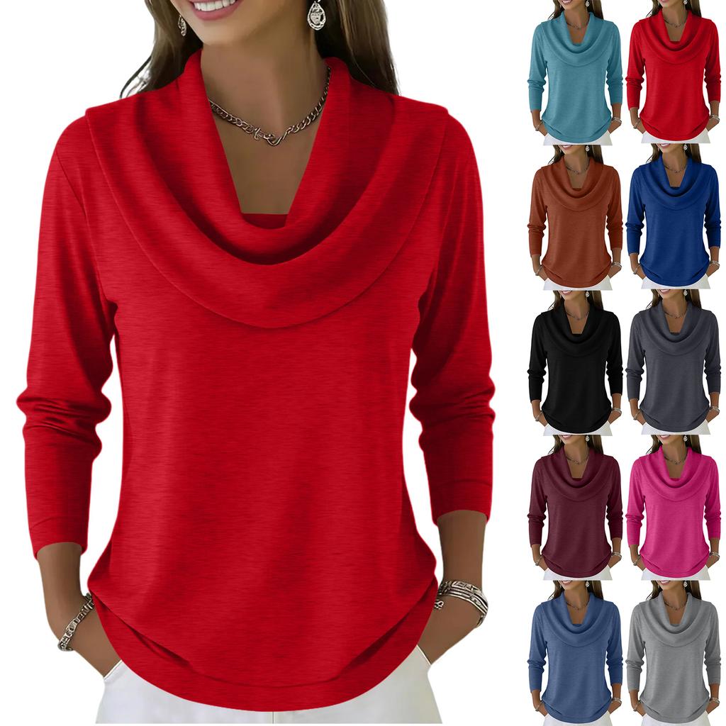 Women's Casual And Fashionable Round Neck Long Sleeved Solid Color Top