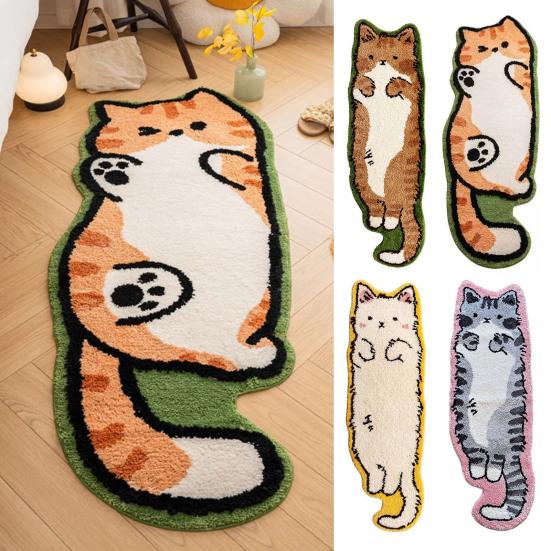 Add a playful touch to your home with this irregular-shaped cat floor mat featuring fun cat patterns. Crafted from high-quality materials, this soft and comfortable rug provides a cozy surface for your feet, perfect as a bedside carpet or plush living room accent. The anti-slip bottom ensures stability and safety on various floor types, making it an ideal choice for any room.