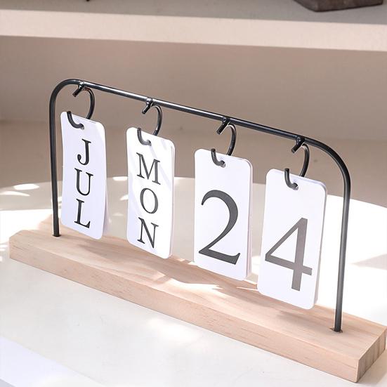 Metal Flip Calendar with Wooden Base Daily Perpetual Desk Calendar Turn Page Month Date Display Standing Desktop Planner for Office Home