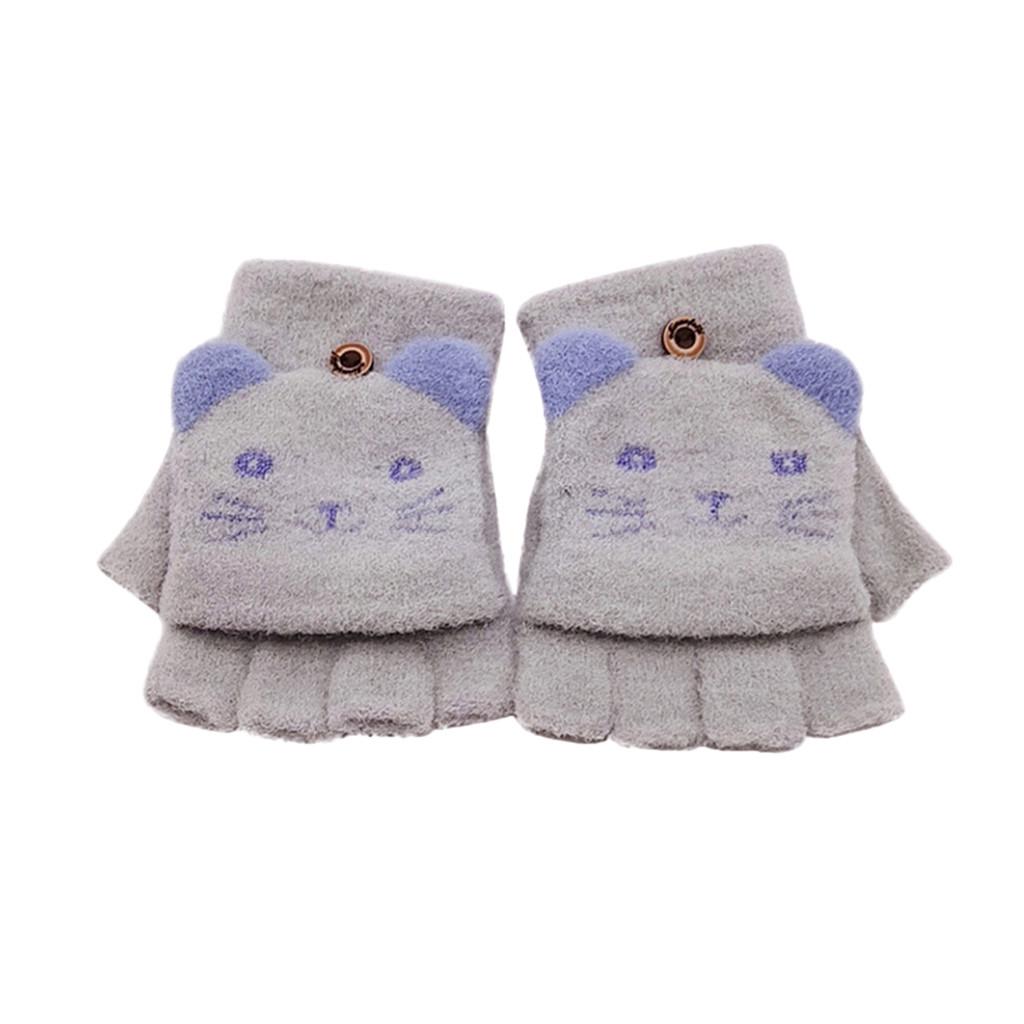 Children Kids Boys Girls Winter Cartoon Patchwork Color Warm Knitted Gloves