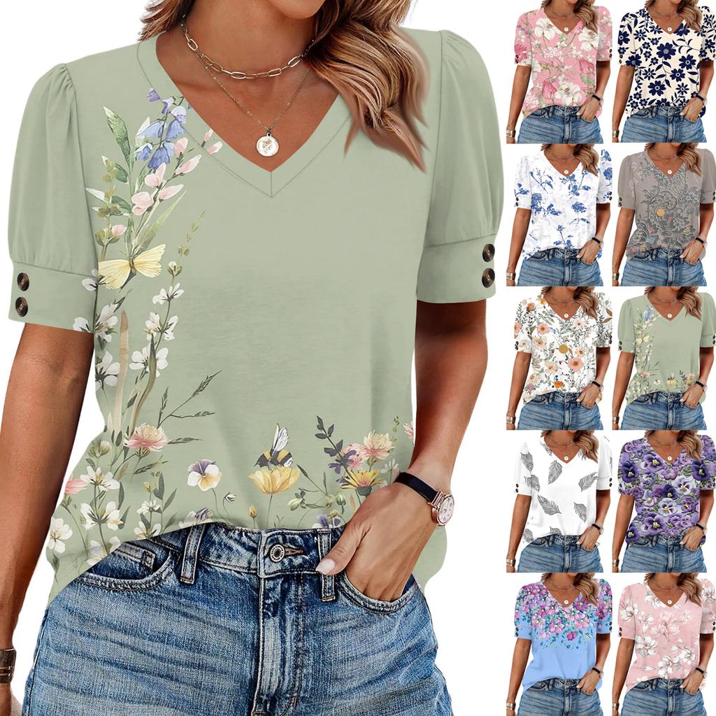 Womens Tops Short Sleeve Shirts Buttons V Neck Fashion Outfits Blouses Casual