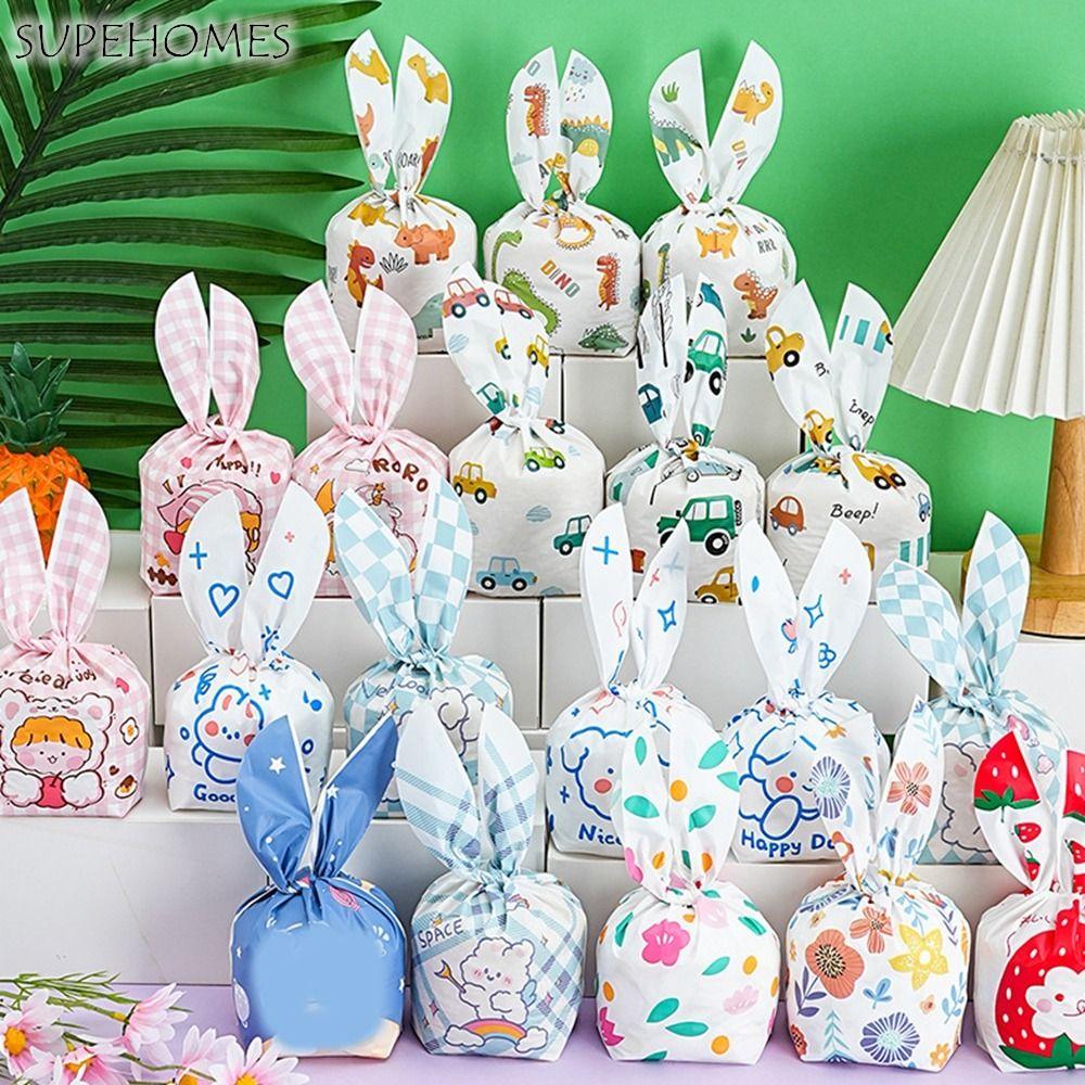 50Pcs Plastic Rabbit Ear Candy Bags Cartoon Multistyle Rabbit Long Ear Bags Animal Pattern Cute Cookie Packaging Bags Biscuits