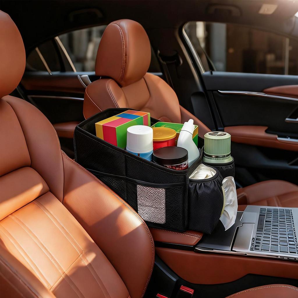 Car Seat Storage Organizer Foldable Multi-Compartment Storage Caddy With Handle Interior Organizer Accessories For Toys Tissues
