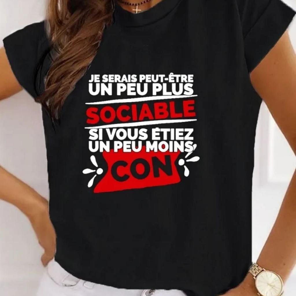Cadeau Homme Je Serais Peut-être Un Peu Plus Sociable Si Vous Étiez Un Peu Moins Con Women T-Shirt Fashion Printing Tee Tops