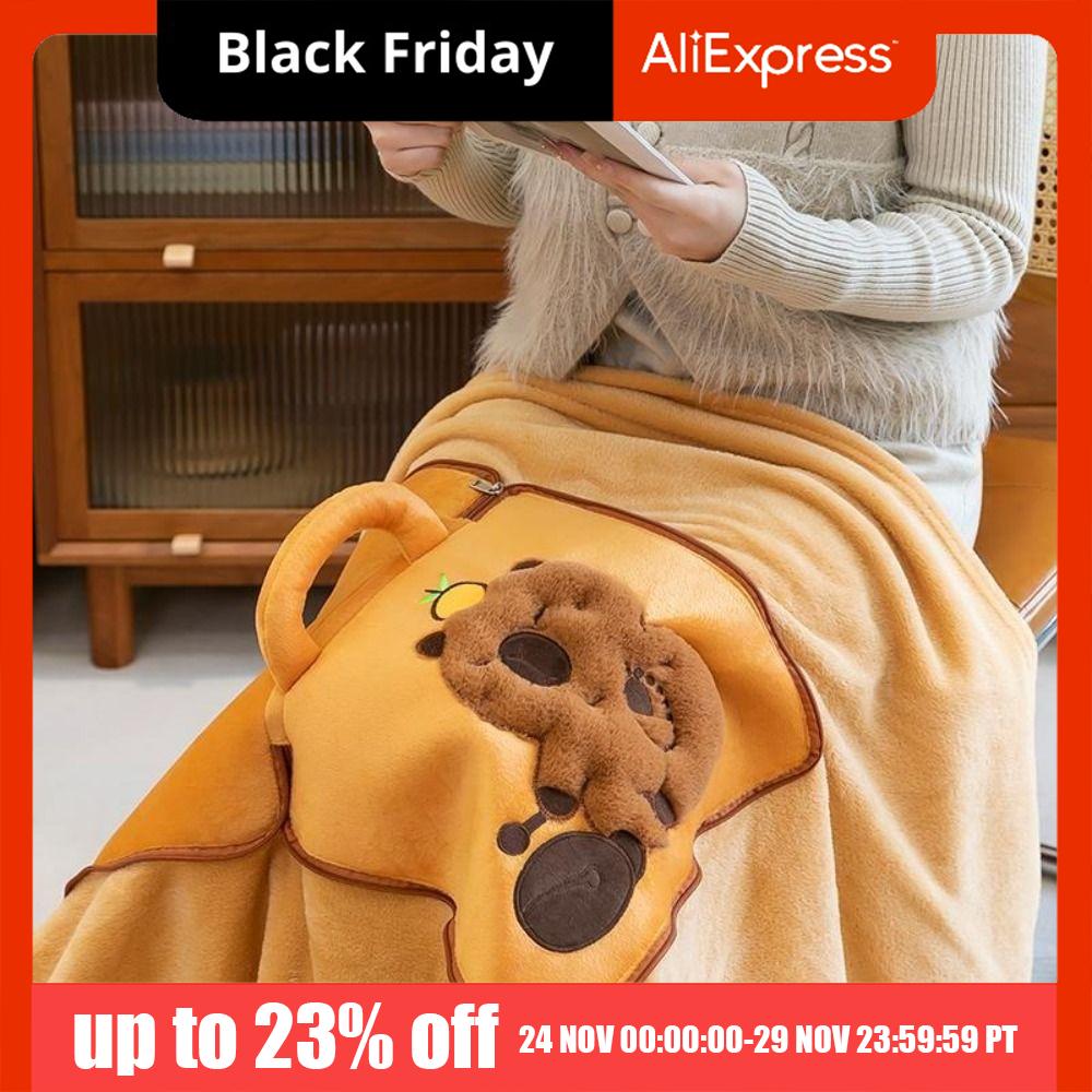 Portable 2 In 1 Capybara Pillow Blanket Plush Soft Travel Blanket Cartoon Cozy Nap Cushion Blanket Travel
