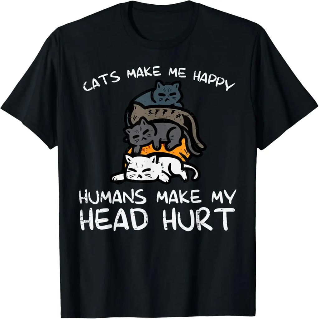 Cats Make Me Happy Humans Funny Kitten Fur Mom Dad Men Women T-Shirt