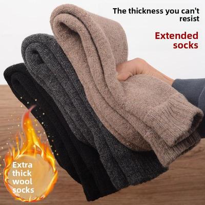 Men's Extended Winter High-top Super Thick Wool Socks, Women's Fleece Socks, Large-sized Long Top Loose Cold-proof Cotton Socks