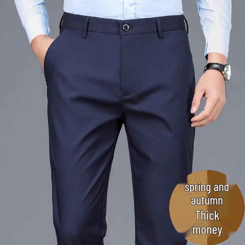 These men's casual stretch straight-leg trousers offer a perfect blend of style and comfort, ideal for everyday wear. Crafted from a soft and durable polyester blend, they provide a slight stretch for added ease of movement. The solid color design makes them versatile, easily pairing with various wardrobe staples. Suitable for any casual setting, these trousers are a must-have for anyone looking to combine practicality with modern style.