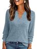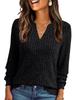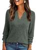 2025 Women's V-neck Ribbed Long-Sleeve T-shirt - Solid Color, Warm, Brushed Finish
