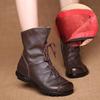 Original Genuine Leather Low Heel Ankle Boots - Retro Style for Autumn/Winter Women's Fashion