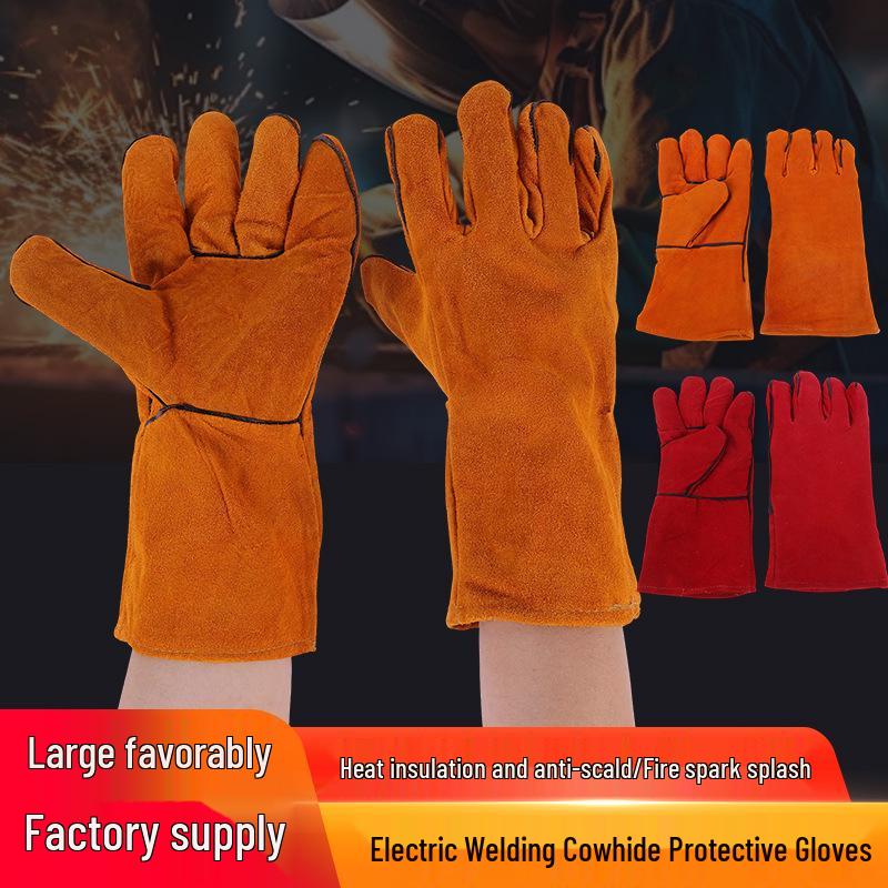 Cowhide Double-Layer Welding Gloves - Heat-Resistant, Wear-Resistant, and Full Leather for Welders Protection