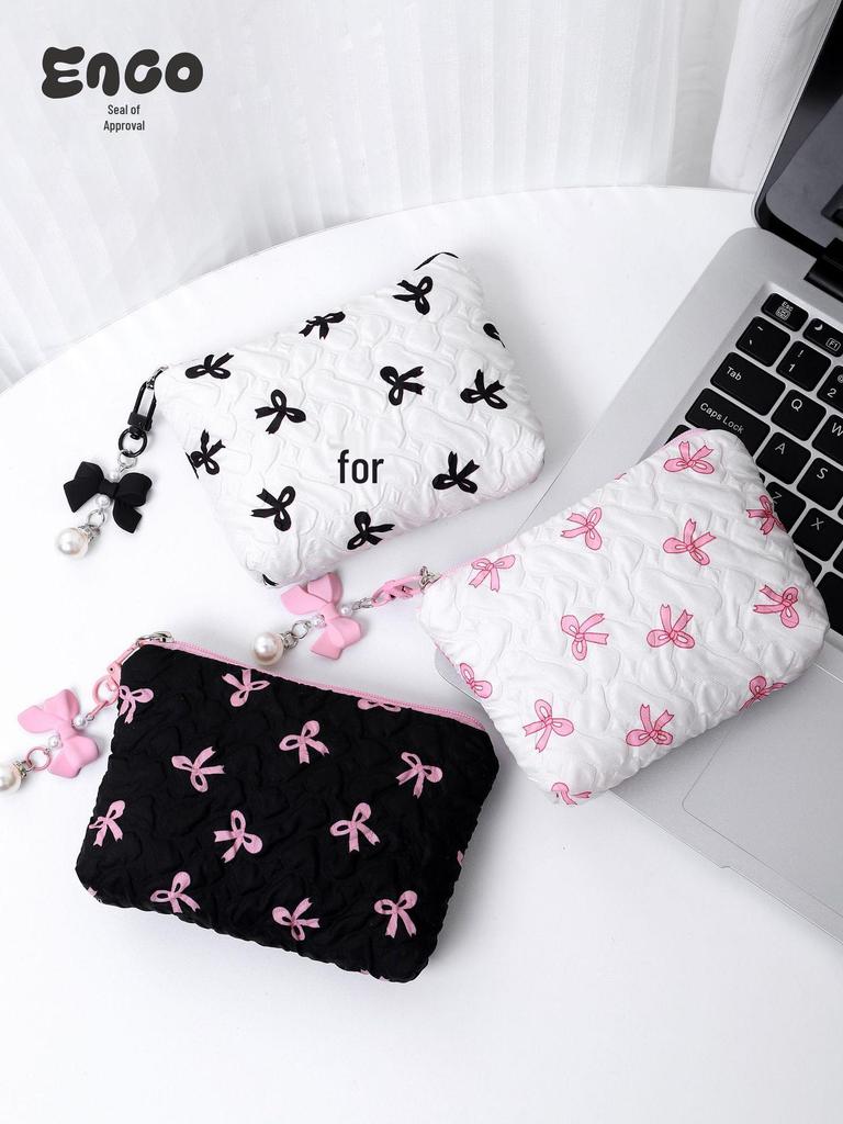 Large Cute Bow Makeup Bag - Portable Toiletry & Cosmetic Storage Clutch