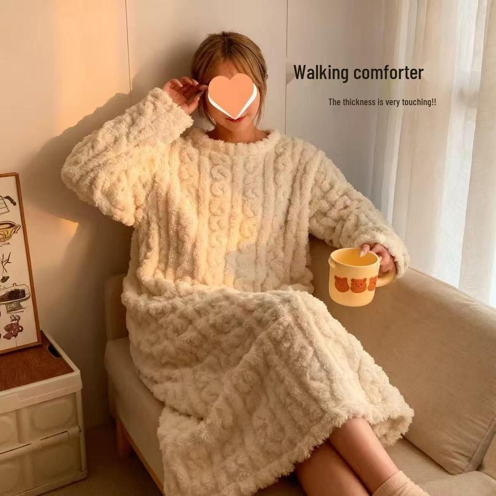 Children's & Women's Long-Sleeve Coral Fleece Bathrobe: Thick, Absorbent, Cozy Pajamas & Towel Wrap for Fall/Winter.