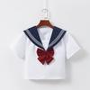 Experience the charm of traditional Japanese school fashion with this elegant sailor suit skirt set. Crafted from high-quality polyester, the outfit features a sleek white design accented by a navy collar, embodying a classic aesthetic that is both timeless and sophisticated. The serge fabric detailing adds a touch of texture, enhancing the overall look of this versatile and stylish ensemble. Ideal for a variety of occasions, this uniform set brings a unique and cultural flair to any wardrobe.