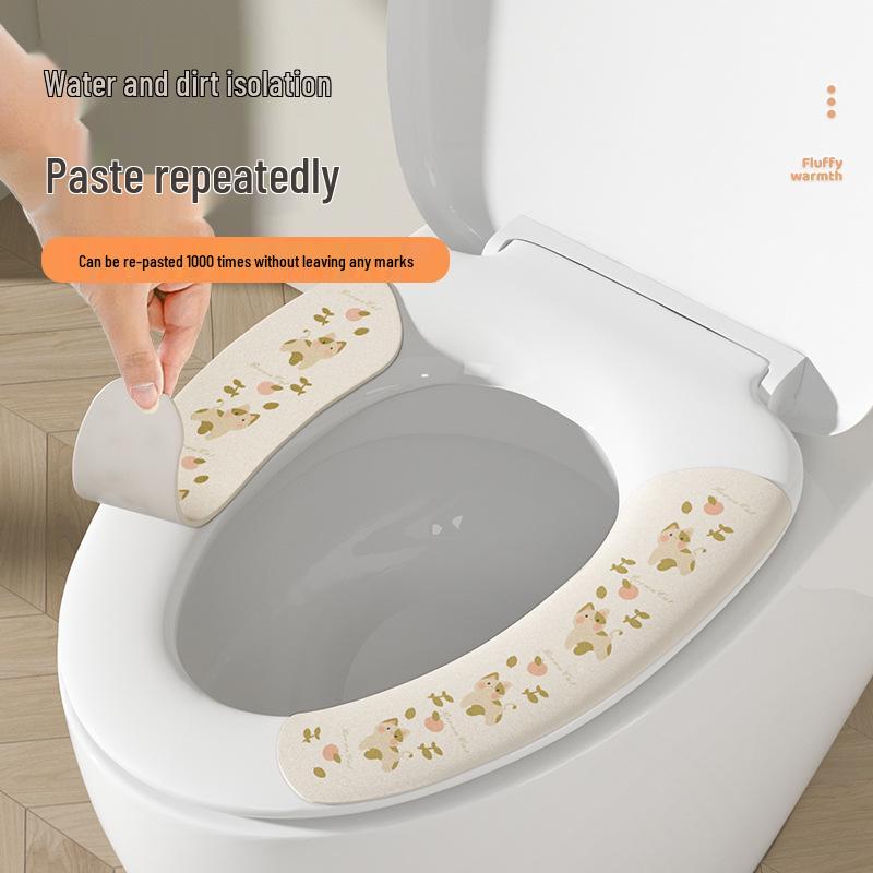 Cute Cartoon Washable Flannel Toilet Seat Pad with Adhesive and Electrostatic Adsorption