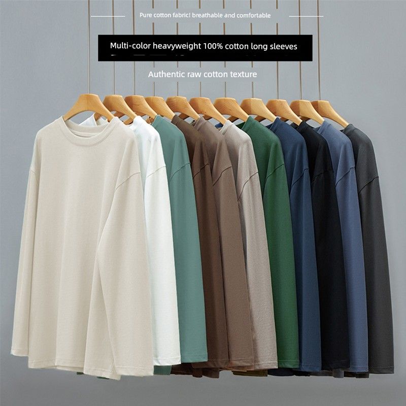 White Long Sleeve T-shirt Men's Pure Cotton 200G G Loose Fashion Brand 2025 New Arrival Fall and Winter New Round Neck Bottoming Shirt Men
