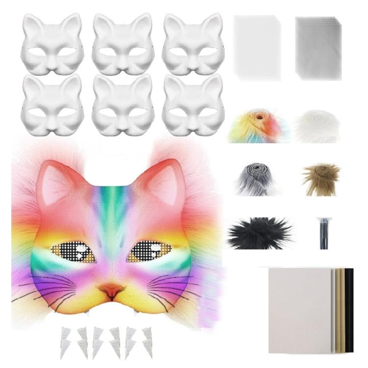 29/42Pieces Animal Cats Face Mask with Furry Trim Eye Mesh for Painting White Paper Mask Unpainted Masquerades Mask