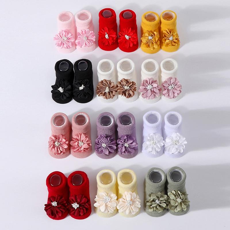 >Babies' toddler socks, chic flower decoration, anti-skid glue soles design perfectly wraps baby's feet, not easy to slip.