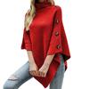 Women's Solid Color Turtleneck Slit Shawl Knitwear Cape Coat