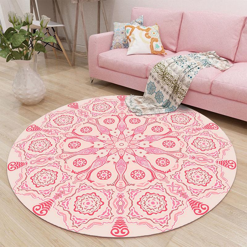 Pink Theme Round Carpet Boho Ethnic Style Living Room Decor Rug Flower Geometric Design Interior Artistic Decorative Floor Mat
