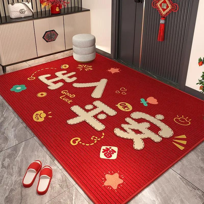 Chinese Lucky Theme Door Mat Safe In Out Pattern Anti Slip Entrance Pad Durable Festive Red Style Home Porch Indoor Decor