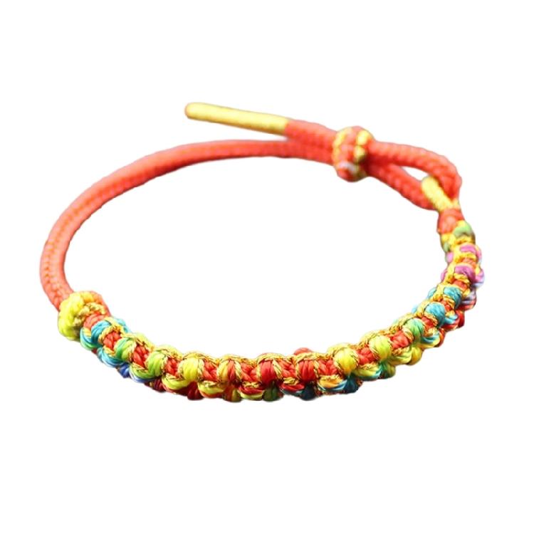 Handcrafted Cotton Rope Bracelet Elastic Wristchain Peach Flower Knots Handchain