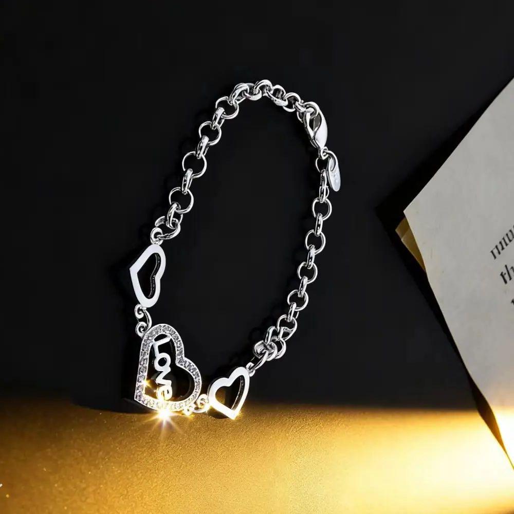 Copper Bracelets for Women Crystal LOVE Heart Chain Fashion Jewelry for Wedding Party Christmas Gifts