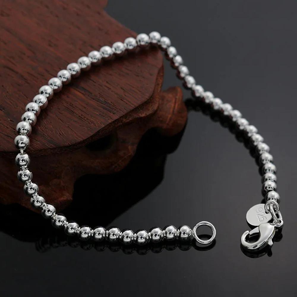 Copper 8 Inches 4mm Round Ball Smooth Beads Bracelet For Women Engagement Gift Jewelry Wedding Fashion Party