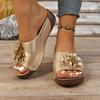 Large Platform Cutout Slipper Women's Floral Wedge Beach Sandal