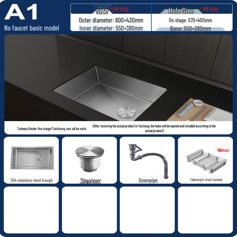 Brushed Stainless Steel Single Basin Kitchen Sink