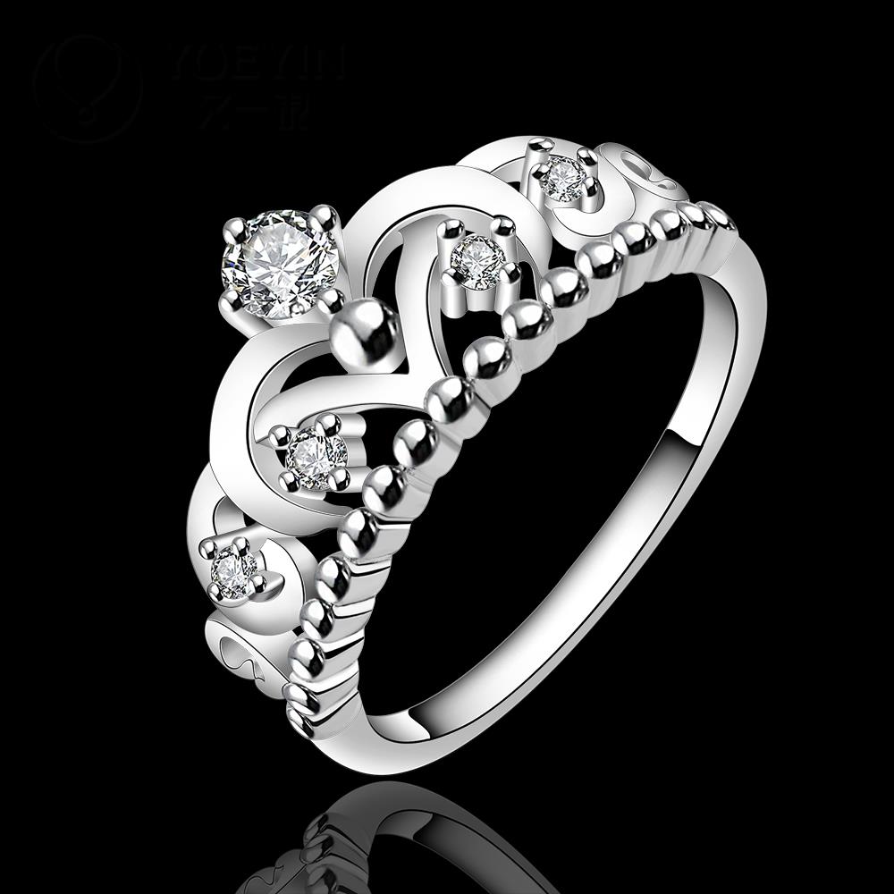 Copper Plated Crown Shaped Ring For Women Shiny Stones For Wedding Engagement Ring For Bridal Couple Jewelry For Lovers Mr168