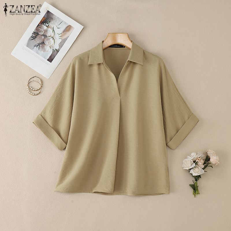 ZANZEA Women Casual Turn Down Collar Loose Short Sleeve Blouse