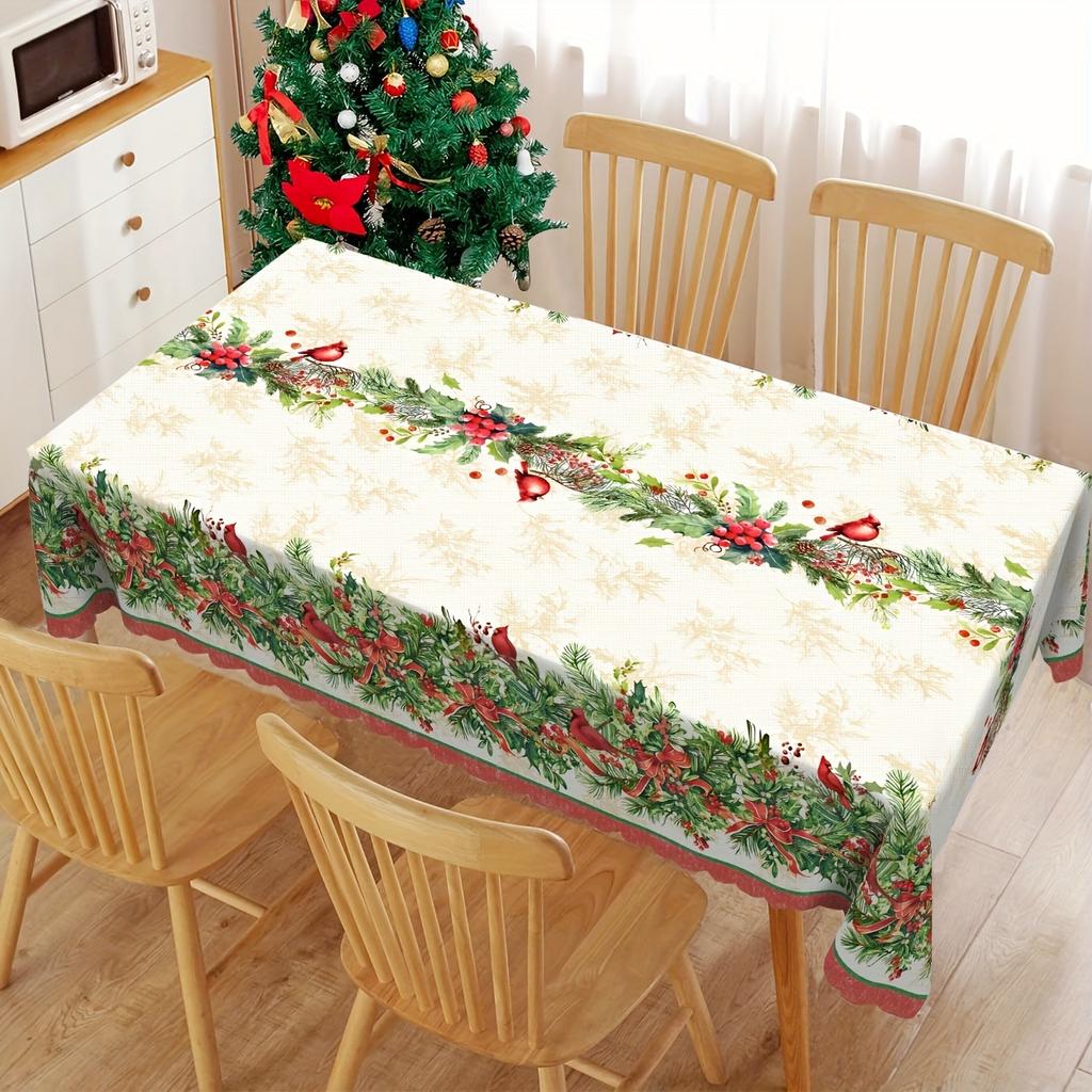 Christmas Holly Berry Bird Waterproof Tablecloth Table Decor Winter Xmas Holiday Kitchen Dining Tablecloth Christmas Decorations