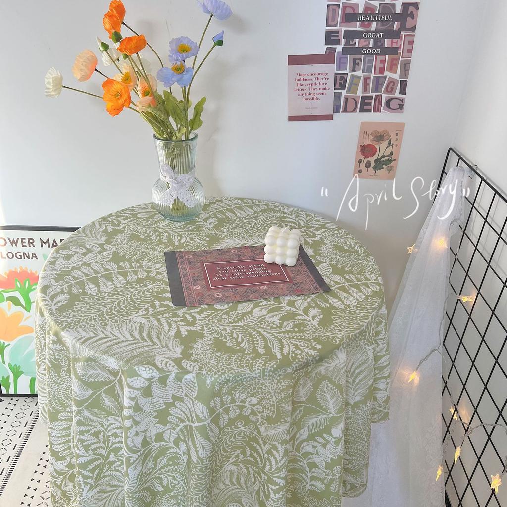 Waterproof Round Tablecloth Fresh Green Nature Tea Table Cloth Plant Luxury Deluxe Thick And Solid Table Cover Spring Home Use
