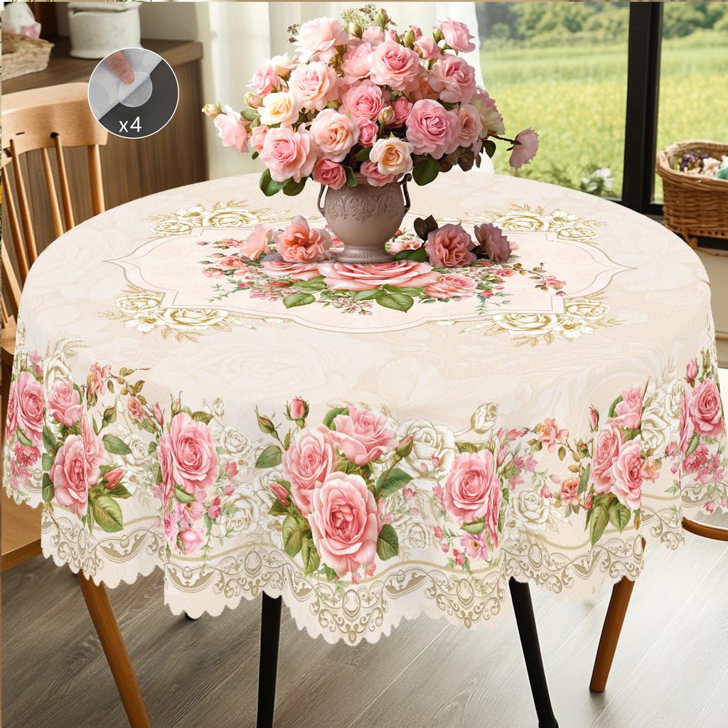 1 Piece Flower Theme Printed Tablecloth, Country Farmhouse Style, Bright Rose Pattern Design, Spring And Summer Camping Style Picnic, Wedding Season,